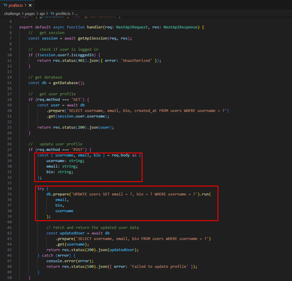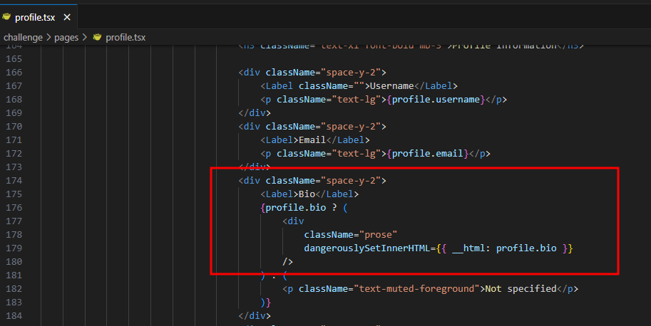However, it’s just self-XSS at first. We can inject an XSS payload into our profile, but it only triggers for ourselves. The challenge is to make the admin visit our profile.