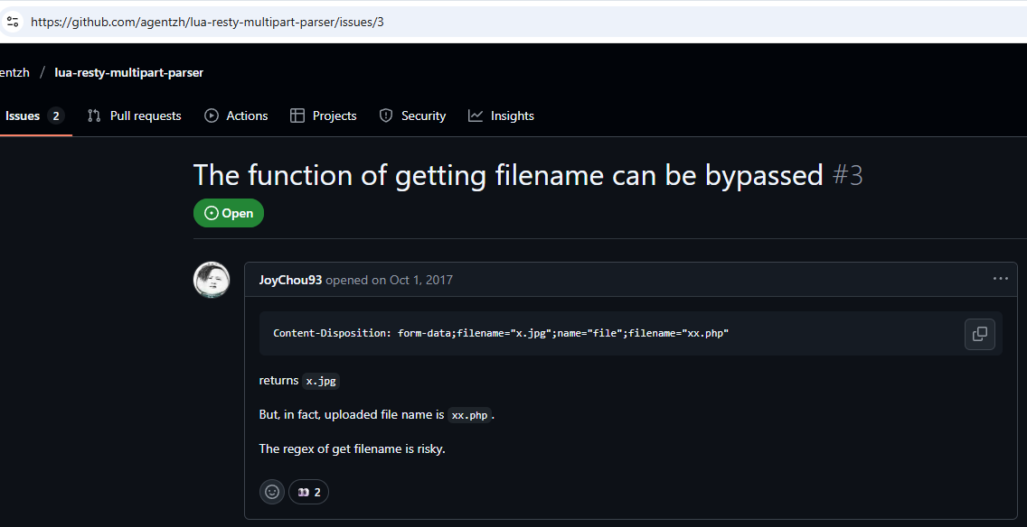 But this parser is quite old. There’s a public GitHub issue showing how to bypass the extension check.