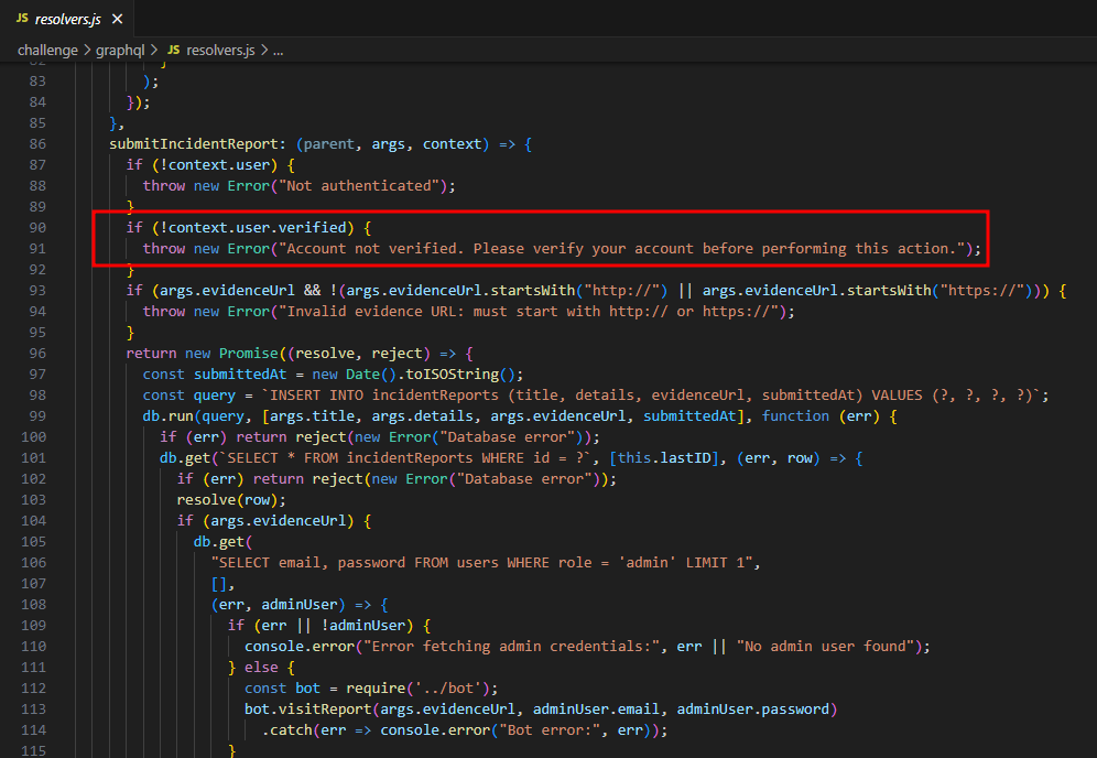 We can make the admin visit arbitrary URLs by submitting incident reports via GraphQL, but we have to be a verified user.
