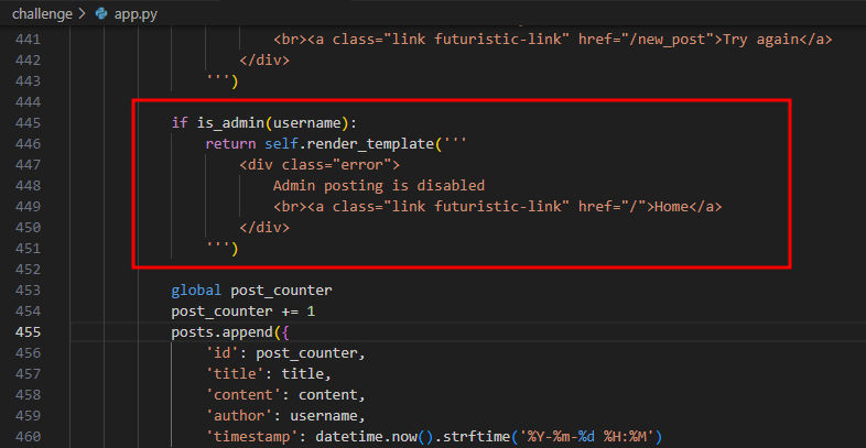 While testing, I noticed I could make the XSS payload force the admin to create a new blog post, with the cookies as the post content. But there’s another filter: the admin can’t create blog posts.