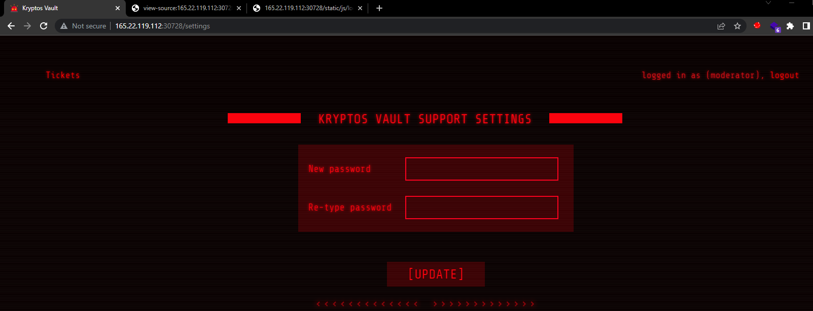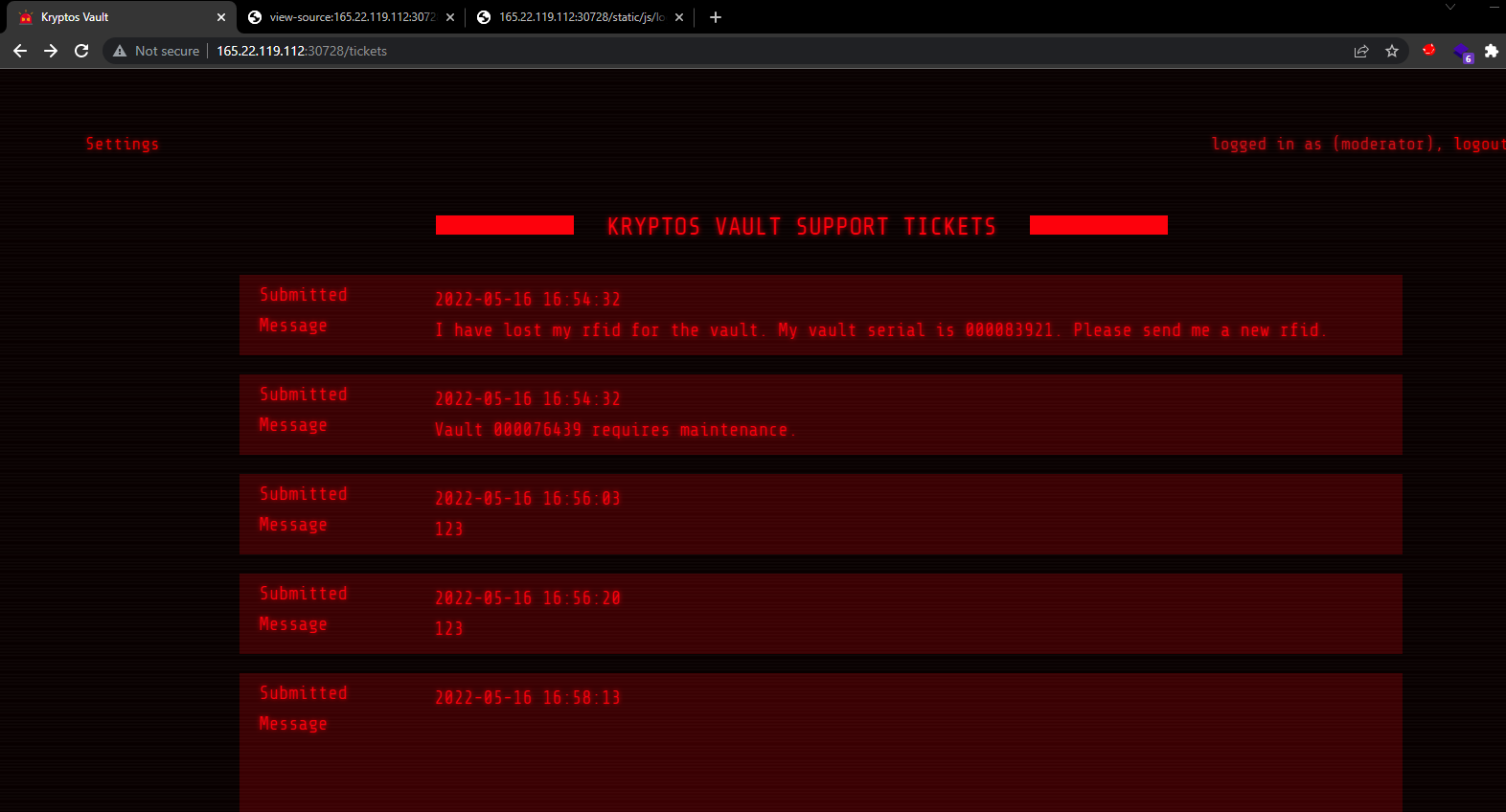 There’s nothing much we see on the tickets page except our payloads and one message. There’s also a settings button.