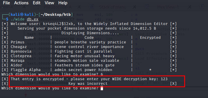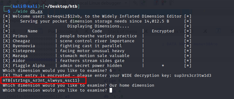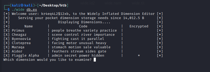 We have an elf binary wide and a database file db.ex. Let’s run the program.