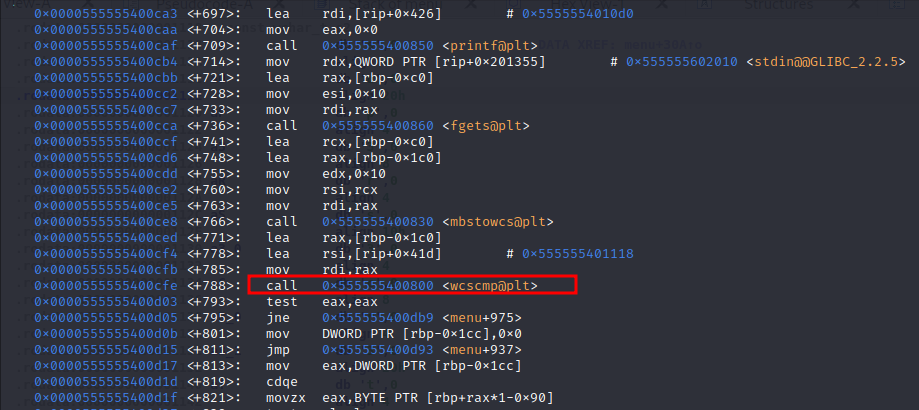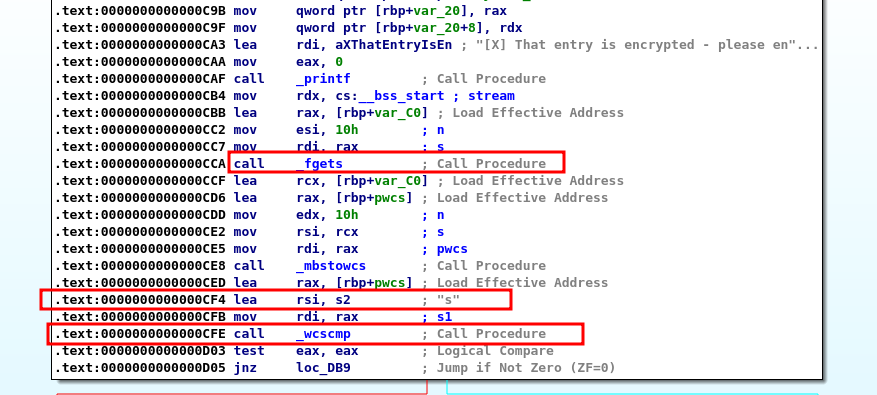 And if we examine the other argument of the wcscmp function, we should get the actual key.