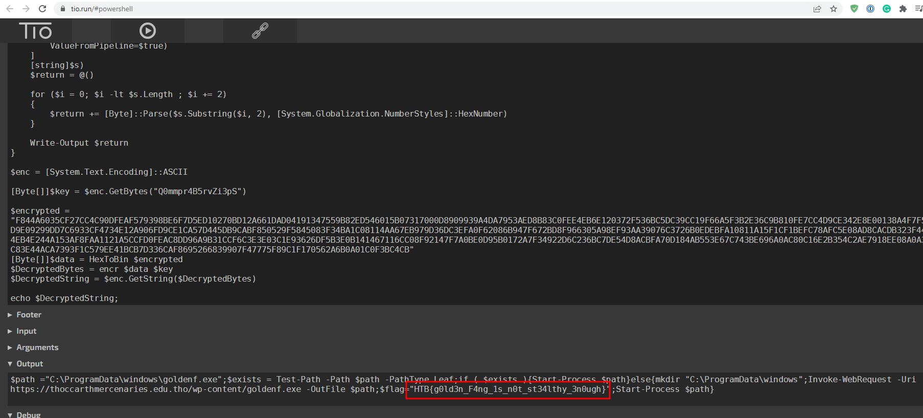 $output = Decrypt-String $key $encryptedStrings[$num];