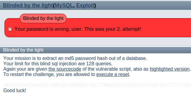 In Blind SQL injection, we don’t get the output of our queries directly on the page. We observe the page response to extract the data and this can be a real pain sometimes. We have to ask the database a series of true or false questions and determine the answers based on the page response. Keeping that in mind, extracting 32 characters using maximum 128 queries, makes it a lot more difficult than I thought.